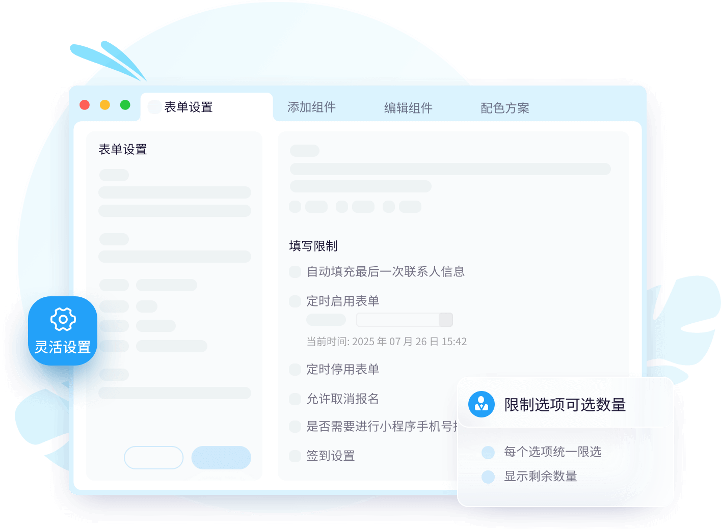 组件选项的可选次数、可用名额设置,以及自动更新