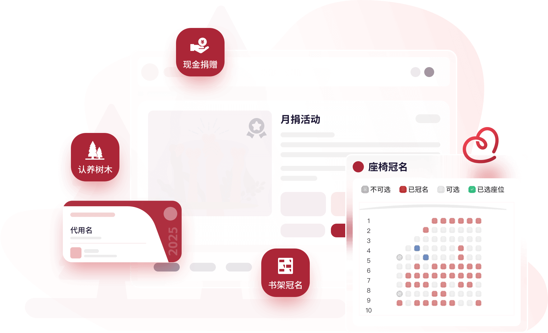 除现金捐赠外,支持座椅冠名、树木认养、一起捐、月捐等更多新“玩法”