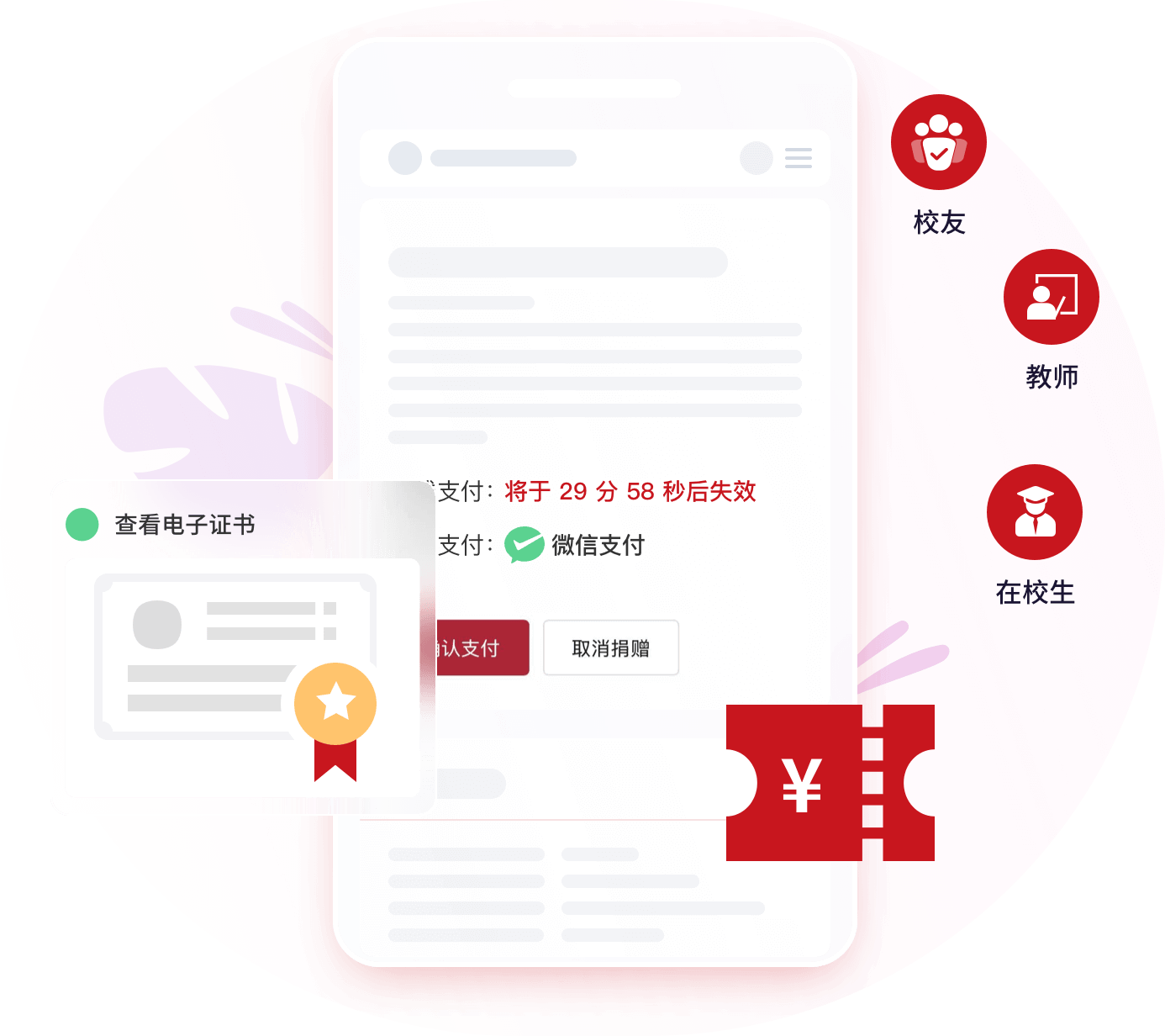 可与校友系统、师资及在校生系统进行对接,实现捐赠权益覆盖泛校友群体